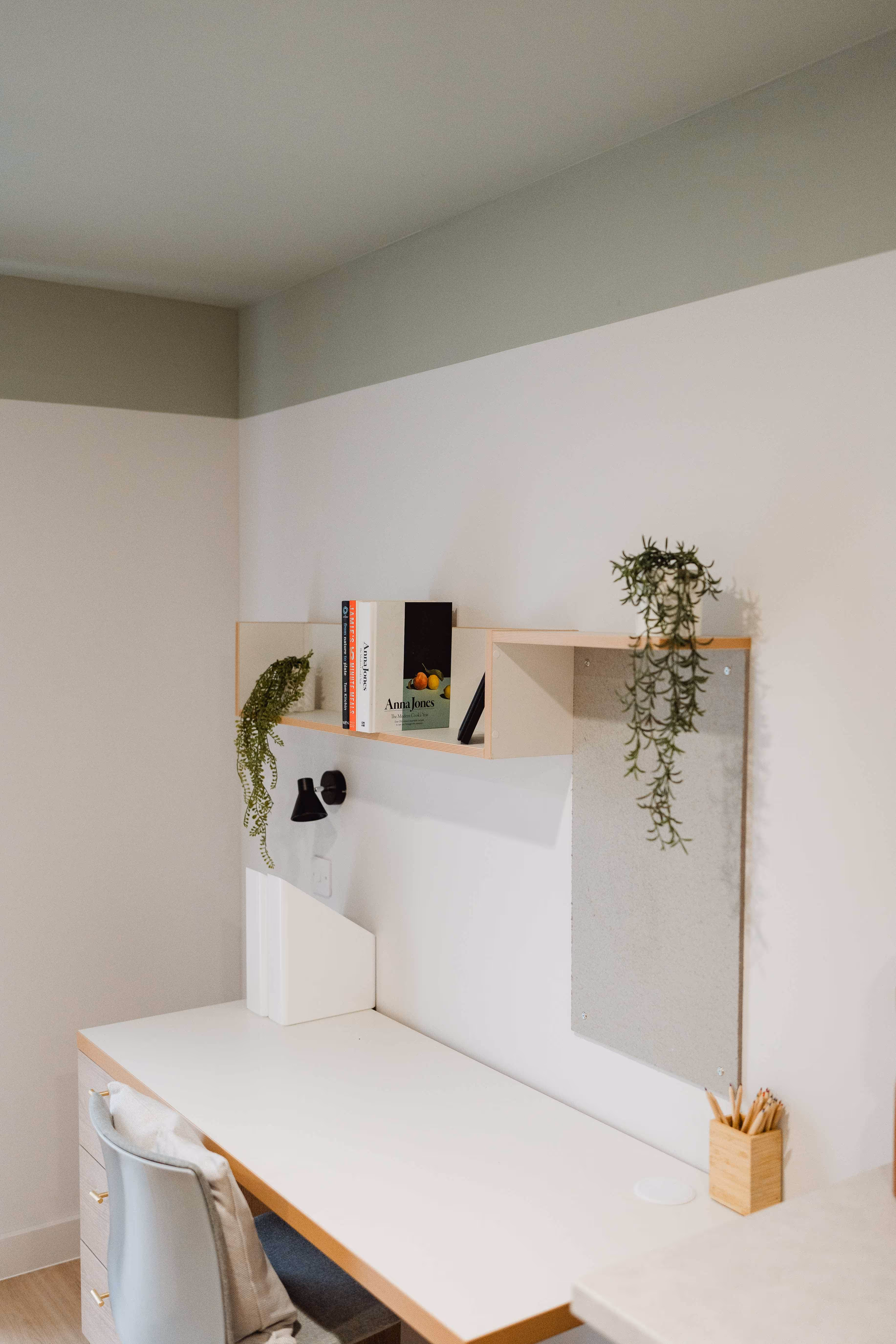 Inside, 69 student apartments maximise every inch of space with bespoke joinery, smart storage solutions, and tranquil finishes. Ensuite bathrooms, compact kitchens, and natural light give students comfort and quality, while design details such as robe-headboard joinery with integrated lighting show how practicality and style can work hand in hand.